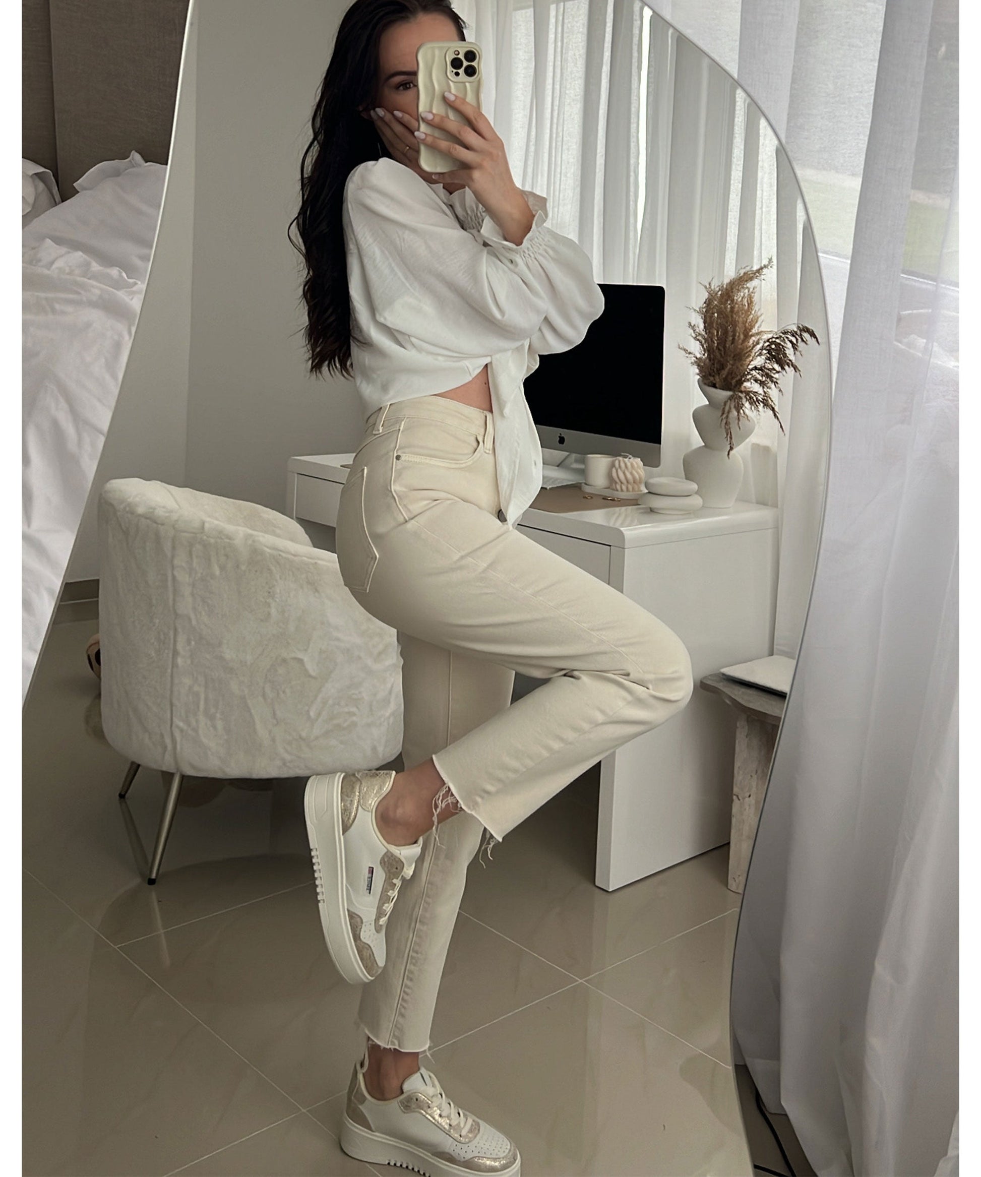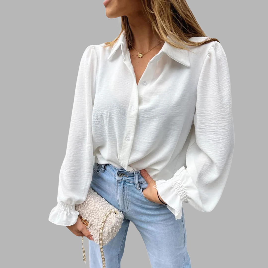 An absolutely adorable blouse with trendy balloon sleeves that adds a touch of elegance to any outfit. Available in sizes XS to L, this blouse fits perfectly to different body types.